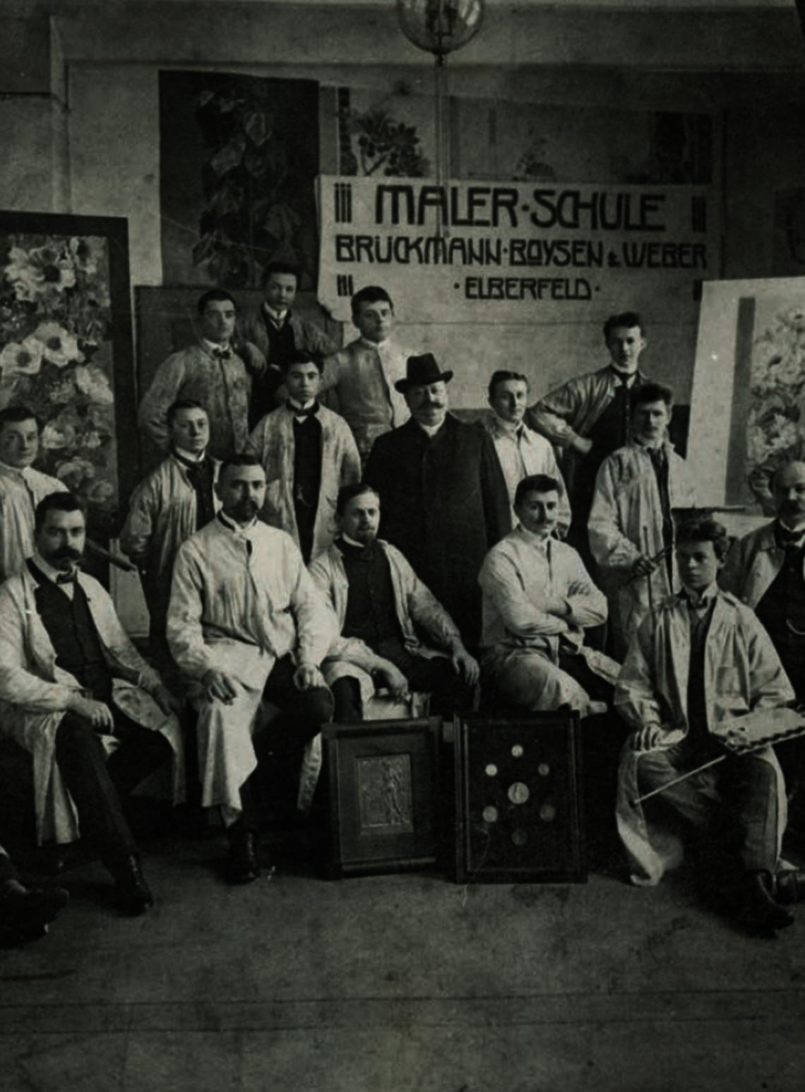 Unsere Wurzeln reichen ins Jahr 1896 zurück, als in Wuppertal‑Elberfeld eine Malerschule gegründet wurde. Aus ersten Lehrwerkstätten entwickelte sich schnell eine eigene Fertigung.